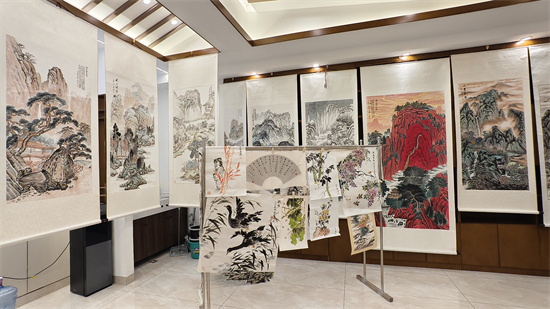 活动精心设置了三大特色板块,让居民既能欣赏艺术佳作,又能亲身参与互动。在书画作品展示区,百余幅精选作品整齐陈列,涵盖山水、花鸟、楷书、行书等多种形式,不少居民驻足观赏、轻声品评,不时拿出手机记录下喜爱的作品。