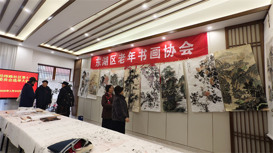 “龙辞旧岁启新程,马跃新春送福来!”1月27日,南昌东湖区豫章街道经纬路社区童叟之家墨香四溢、笑语盈盈,大红的春联与雅致的书画作品相映成趣,由社区联合东湖区老年大学、东湖区老年书画协会及洪都老年书画协会共同举办的 “写联迎吉庆 赏画贺新春” 春节主题活动在此热闹开展。这场以中华优秀传统文化为核心的公益活动,不仅为即将到来的2026年农历马年增添了浓厚年味,更让居民在笔墨书香中感受文化魅力,收获满满的新春祝福。